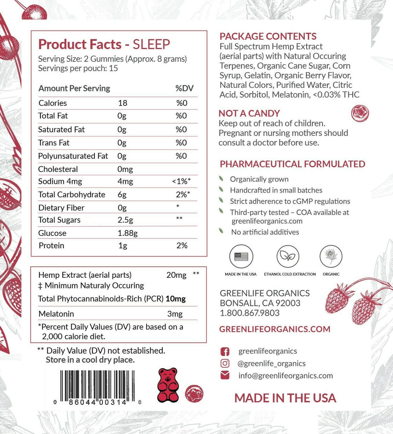 Greenlife Organics Sleep Full Spectrum CBD and Melatonin Infused Gummies